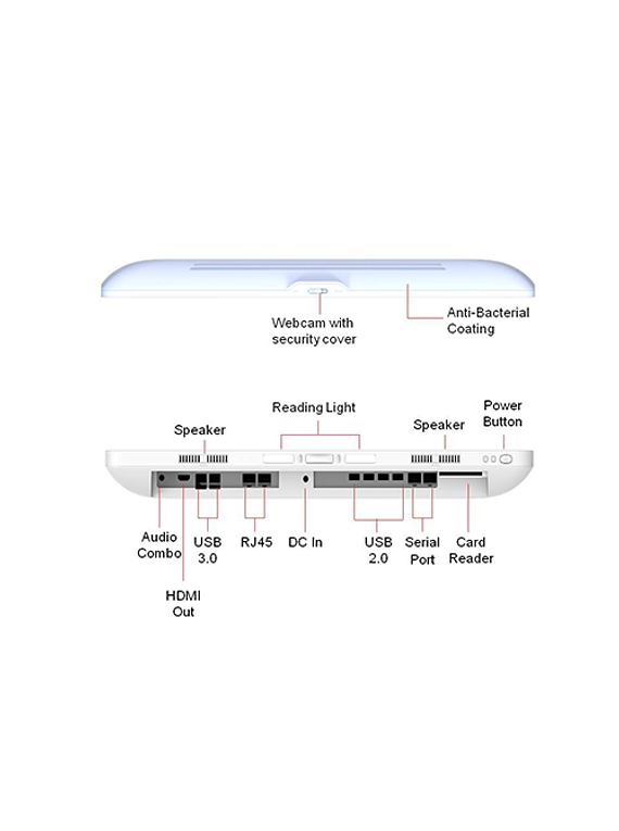 Características: Bateria UPS Interna Intel WiFi, Bluetooth, IC card reader, Fanless IEC 60601-1